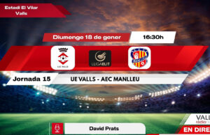 Segueix en directe el partit entre la Unió Esportiva Valls i el Manlleu a partir de les 16.30h des de l’estadi del...